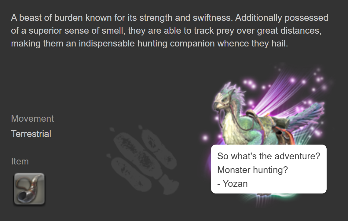 This is a record of the mount “Seikret” from the Monster Hunter Wilds collaboration.