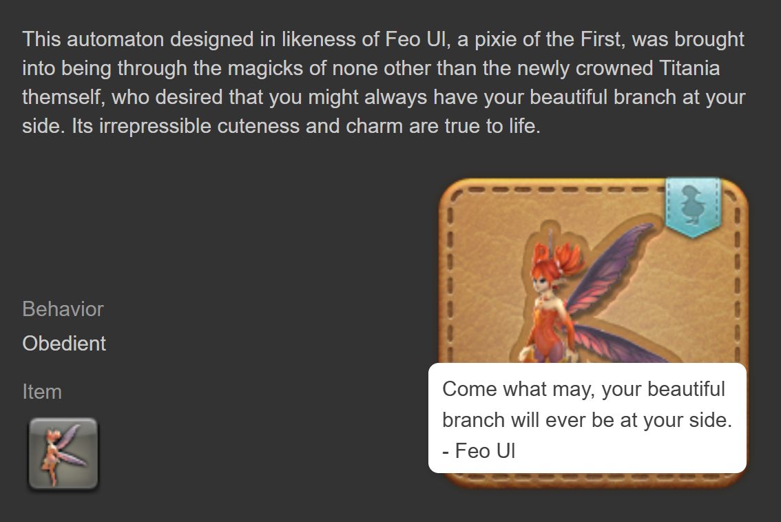 This minion, Wind-up Feo Ul, can be obtained from a treasure chest in the Deep Dungeon (DD) Pilgrim’s Traverse, but it can also be bought and sold on the market board.
