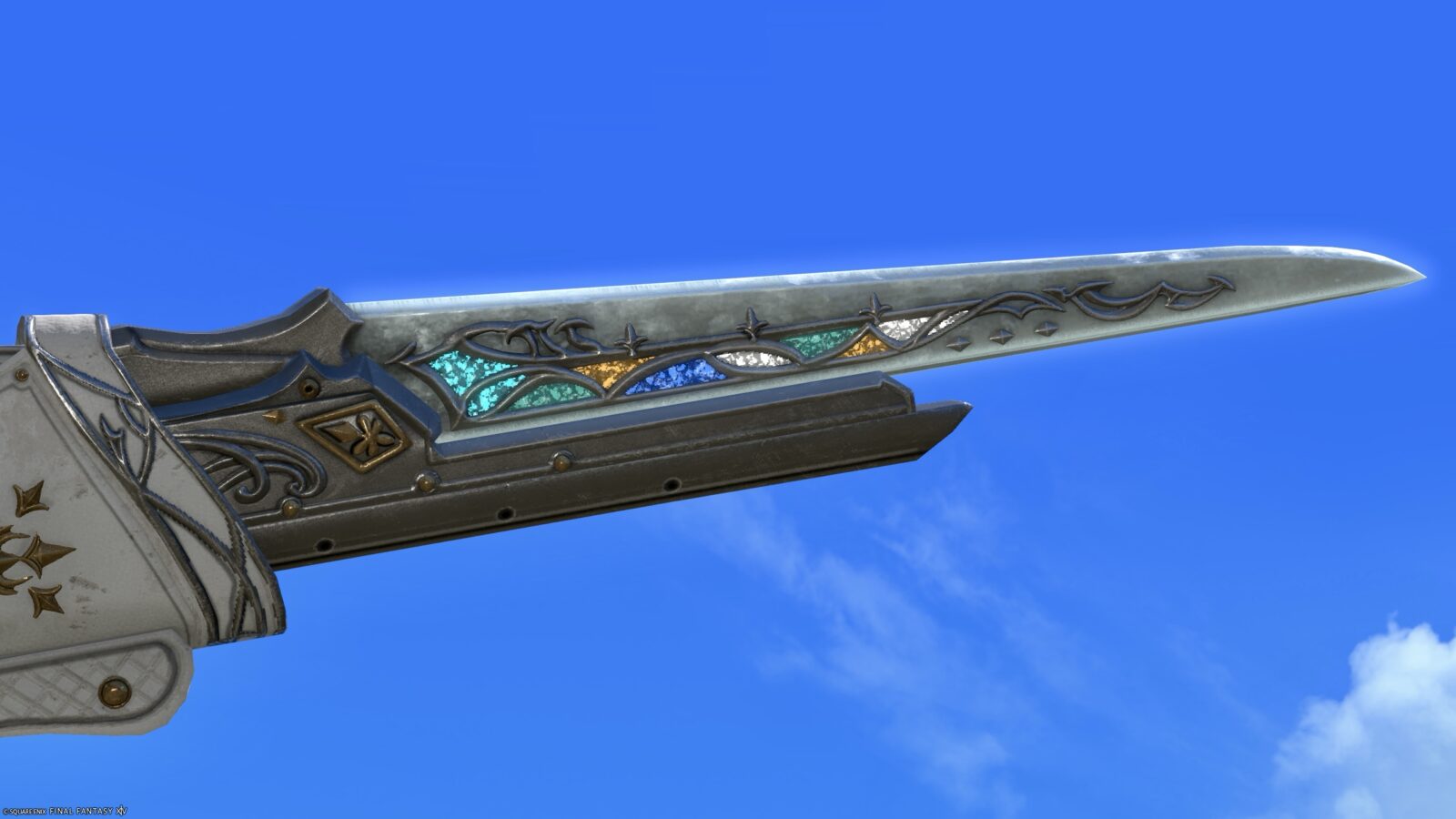 The tip of the sword is decorated with stained glass, making it very stylish.
