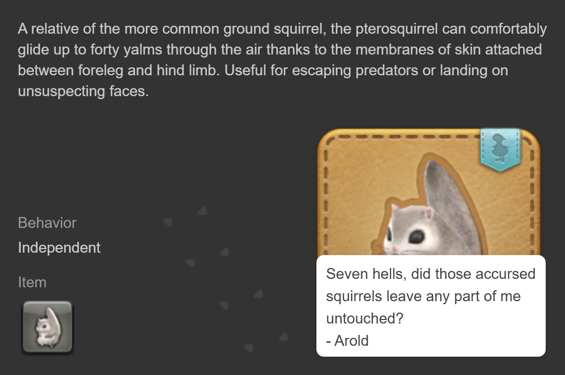 By the way, this “Pterosquirrel” can be obtained in Faux Hollows by exchanging 400 Faux Leaf. It is also tradable, so you can get it from the market board.