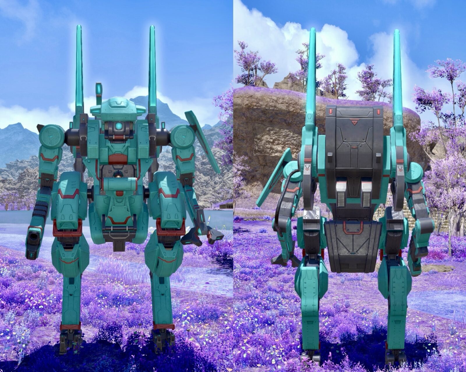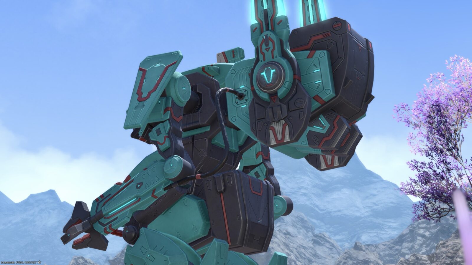 A delicious-looking chocolate mint-colored robot mount “Volatile Gravity Vacuum Suit” (Oizys)