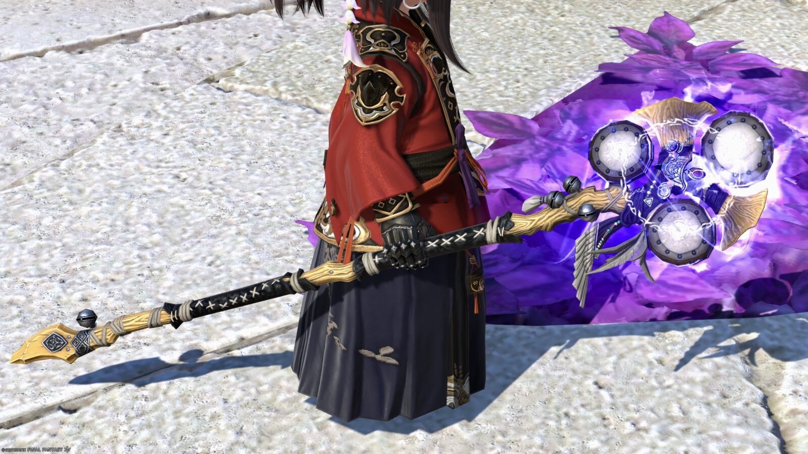Black Mage’s Phantom Weapon (PW) Third Form: Glowing den-den drum? “Phantom Longpole Obscurum”