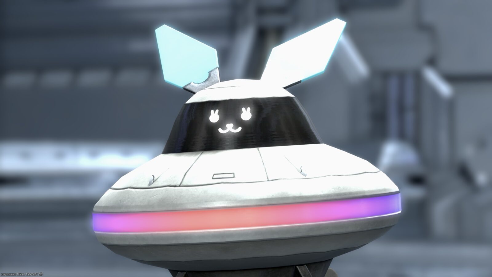 It’s a UFO-shaped Minion with cute ears, a face, and arms.