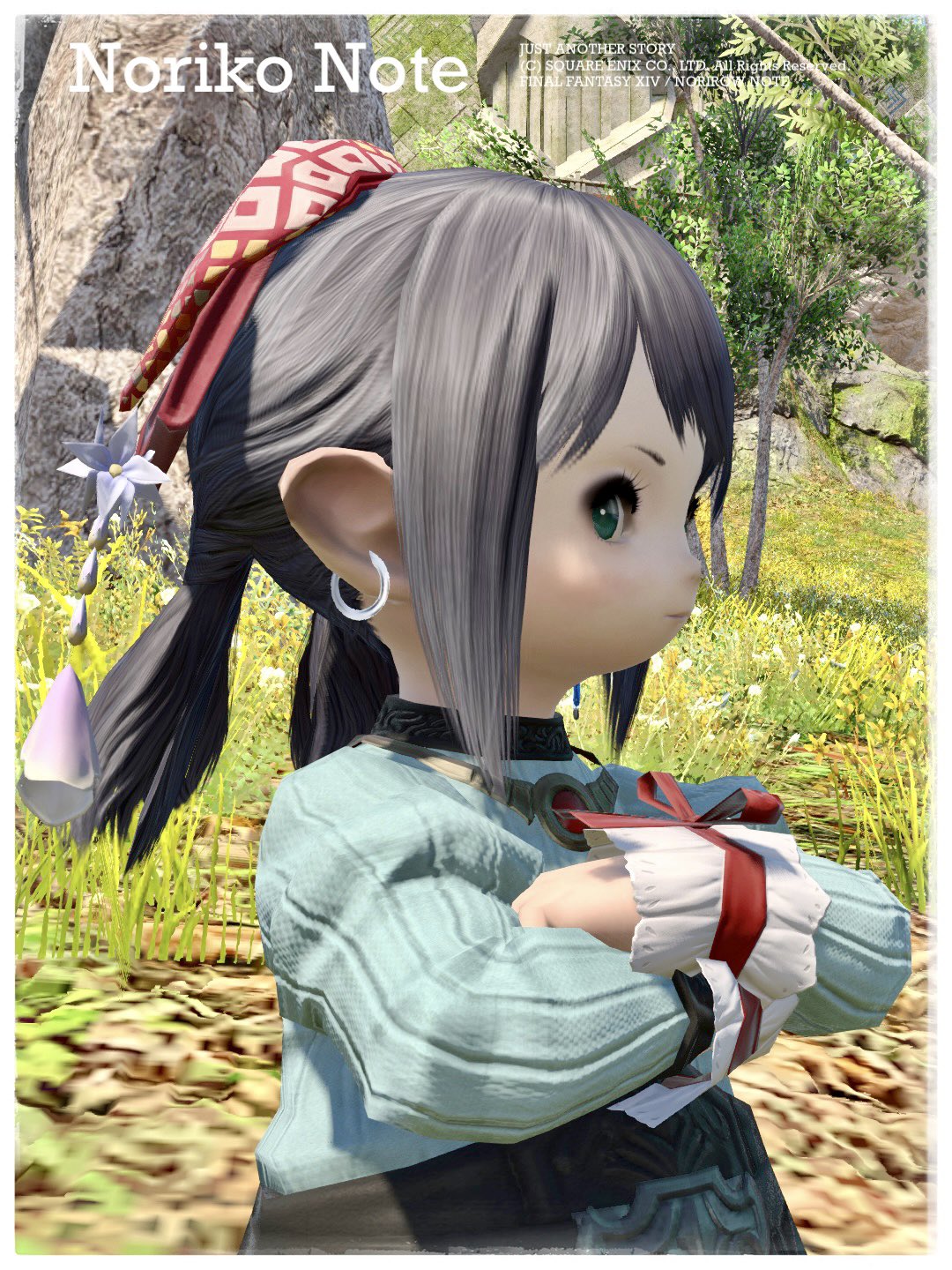 ララフェル女子の場合は膝の上に手を置いて上品な感じに。