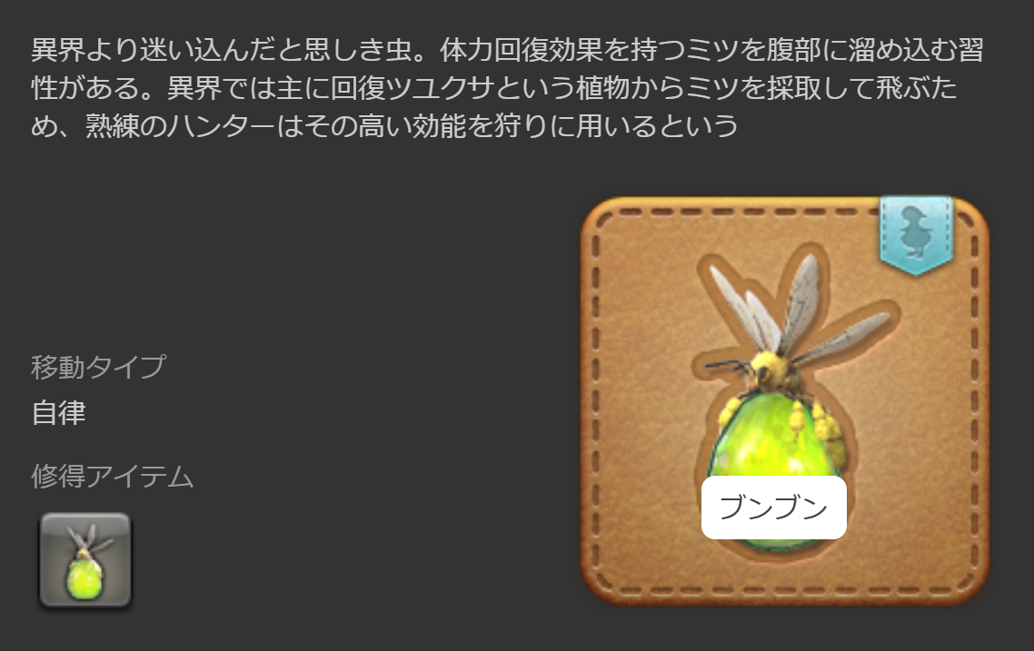 これは、モンスターハンターワイルズコラボのミニオン『回復ミツムシ』の記録です。