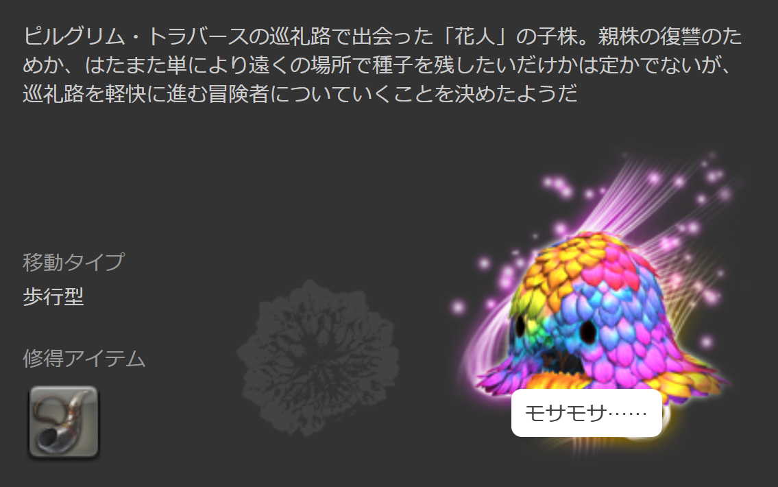 これは、ピルグリム・トラバースのマウント『花人』の記録です。