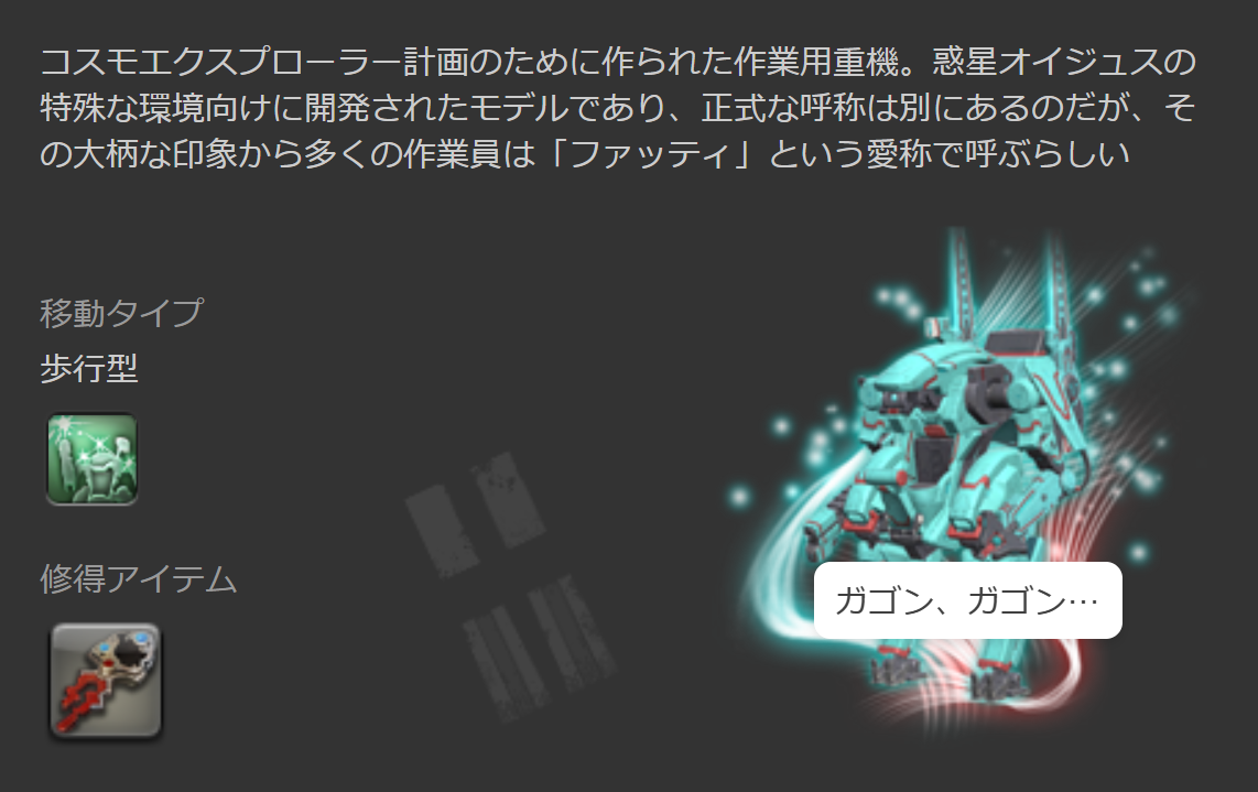 これは、コスモエクスプローラー惑星オイジュスのマウント『局地用パワーローダー』の記録です。