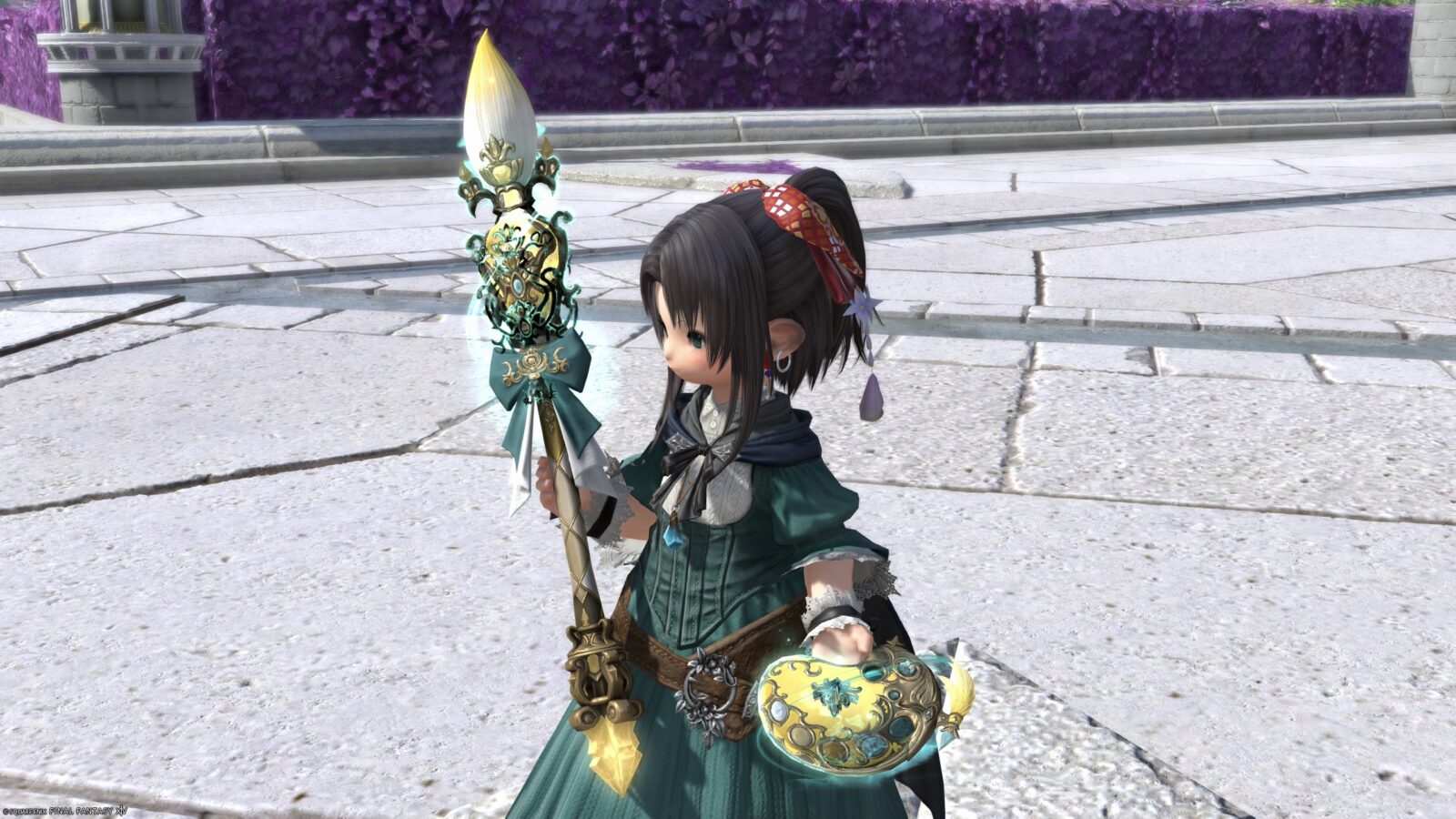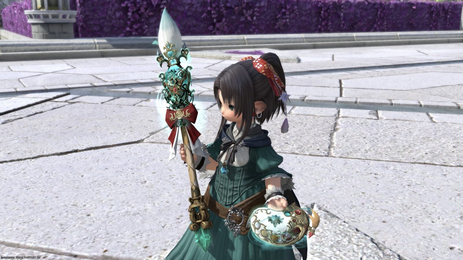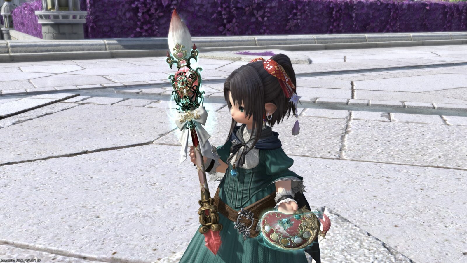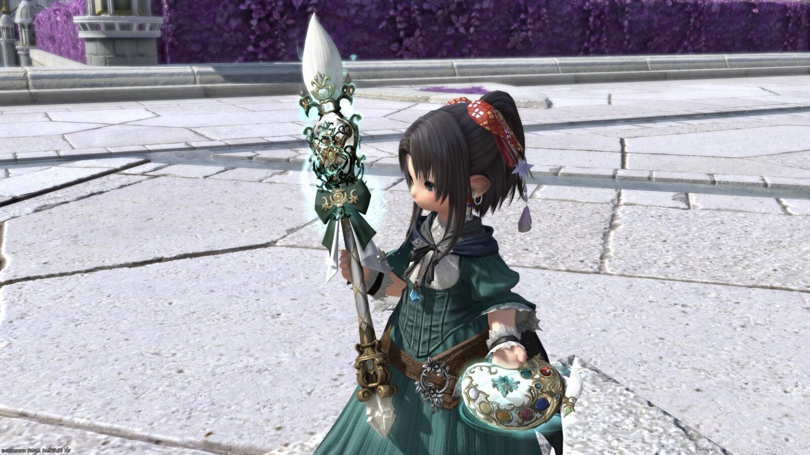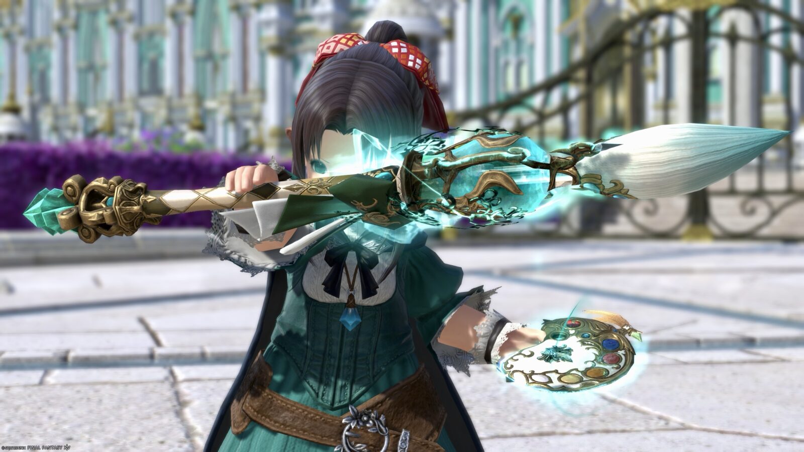 ①で宝石や筆先の色が変わり、②でリボンの色が変わります。