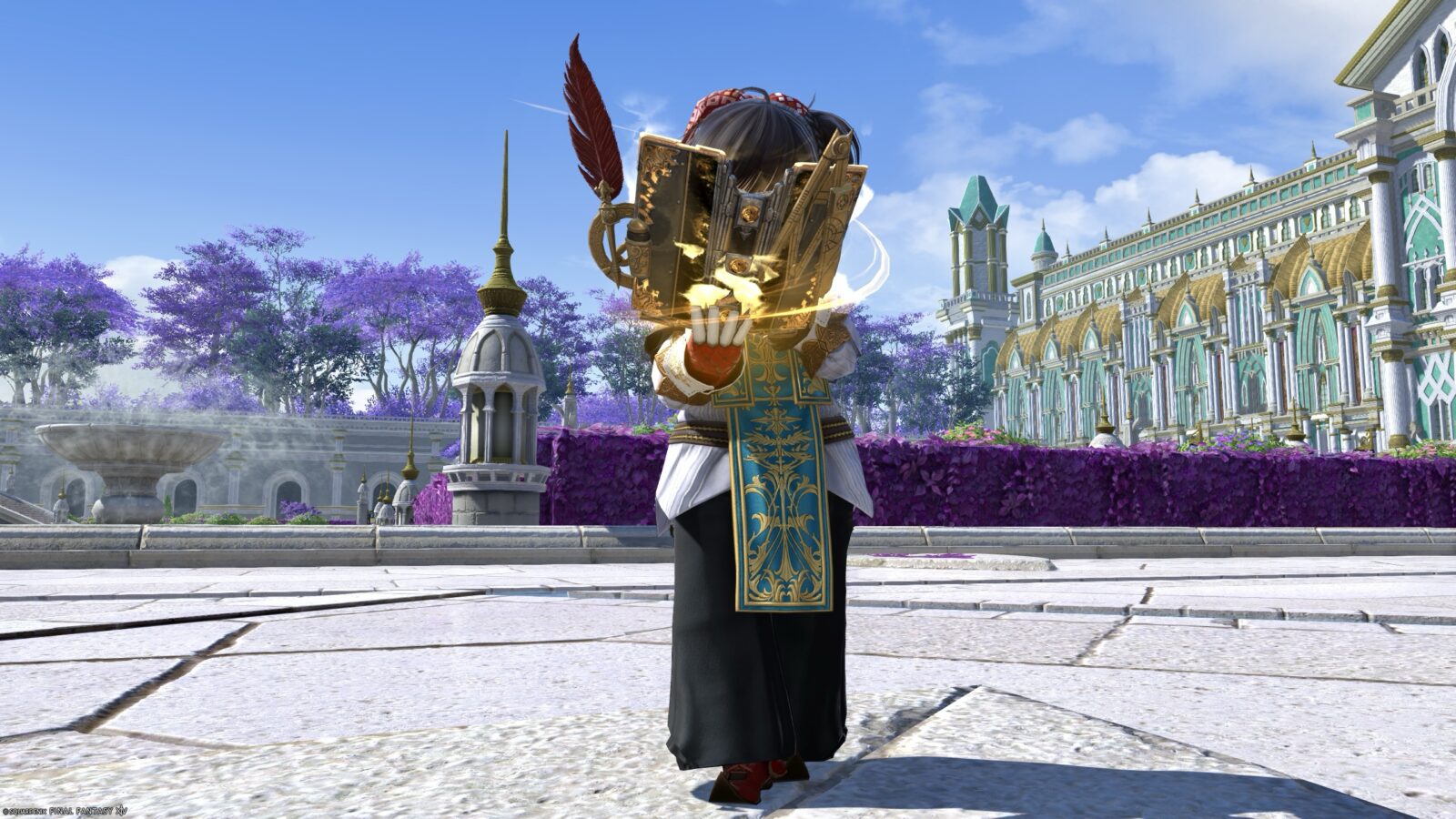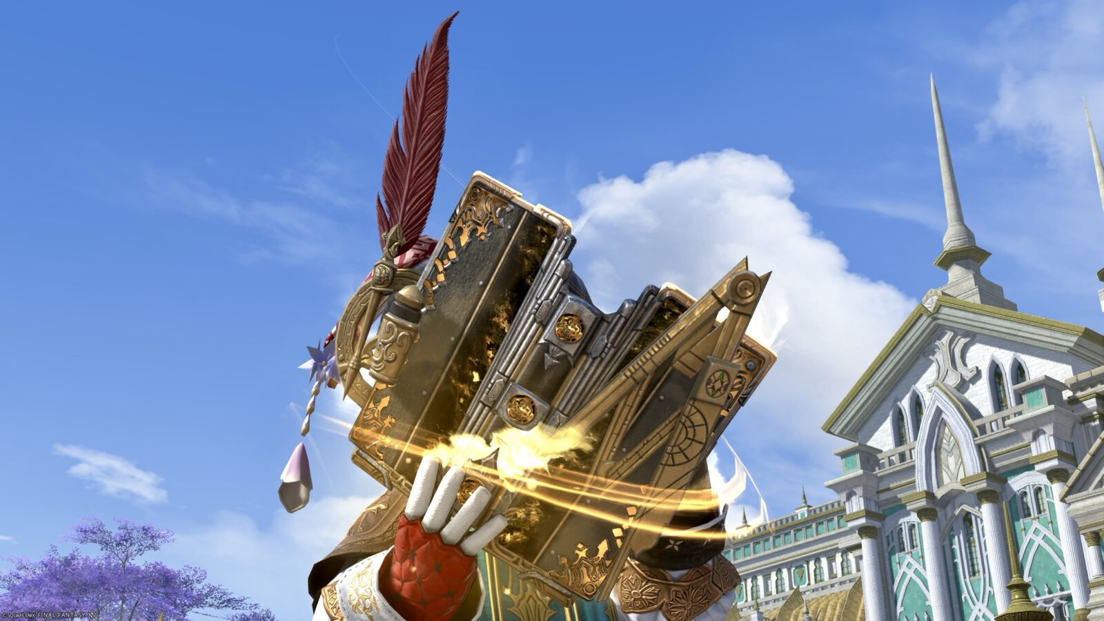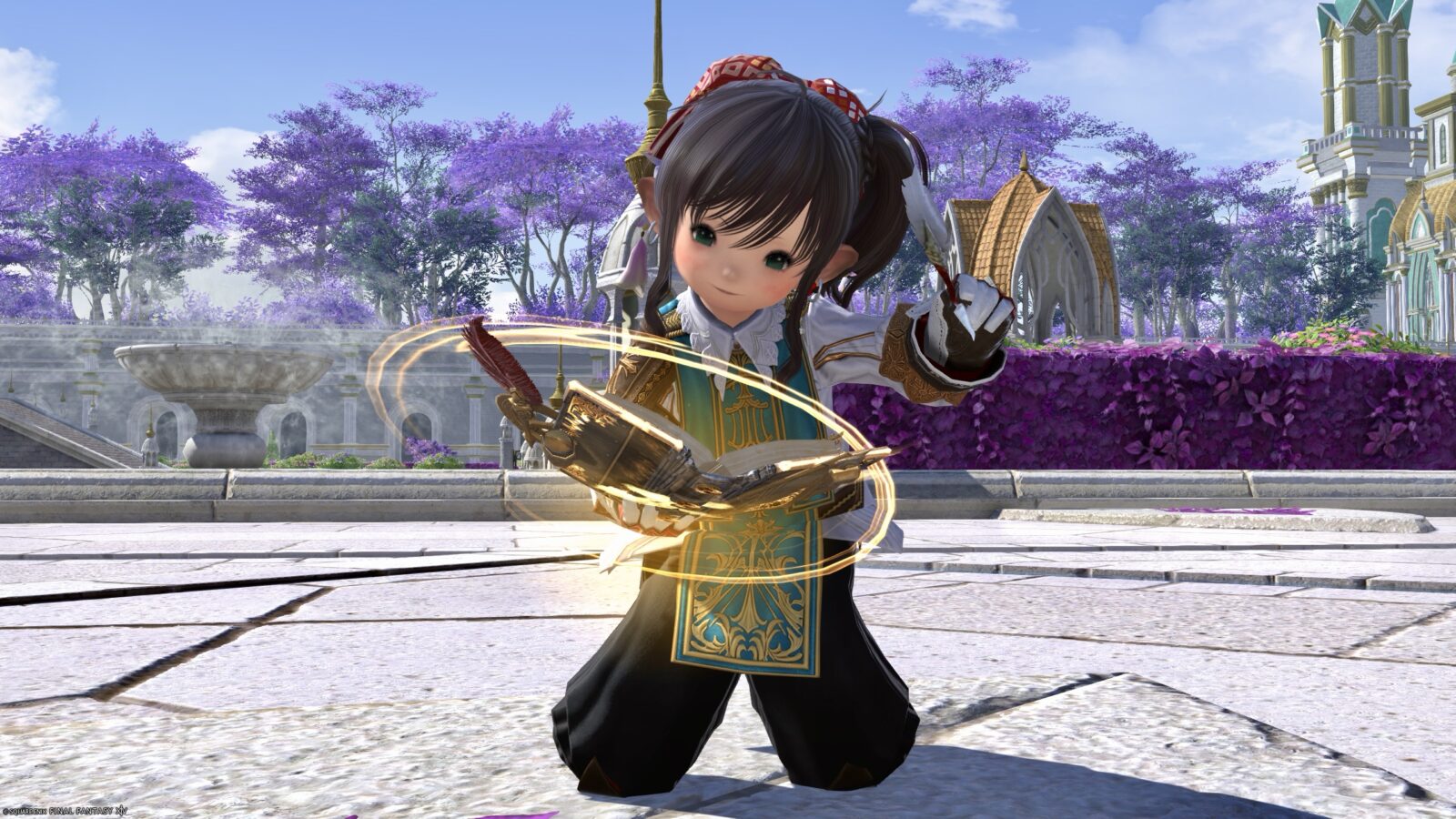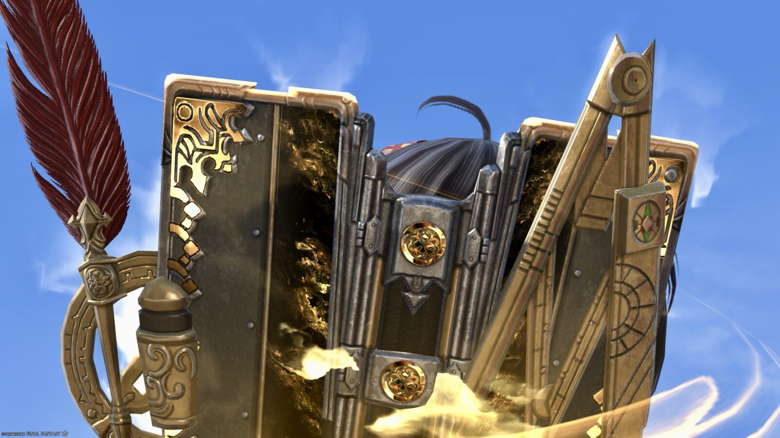 そして構えると黄金に輝くエフェクトが現れ、本の周りを光りの線が渦巻きます。