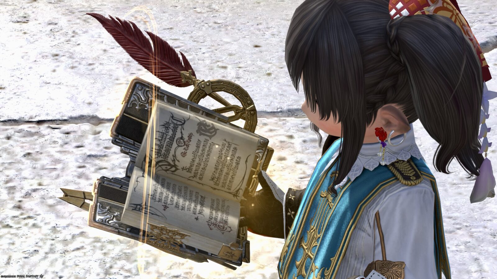 おぉ、赤い羽根ペンが素敵な魔道書だね