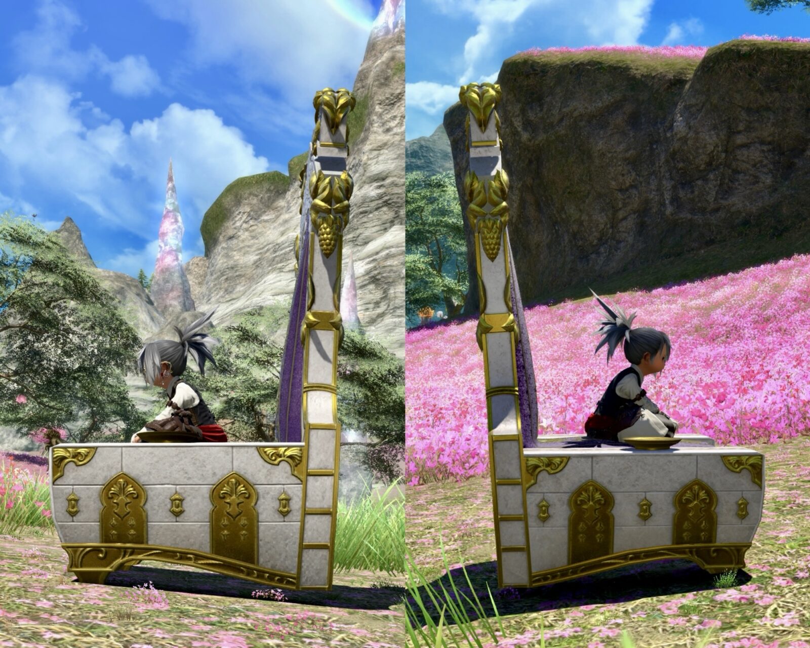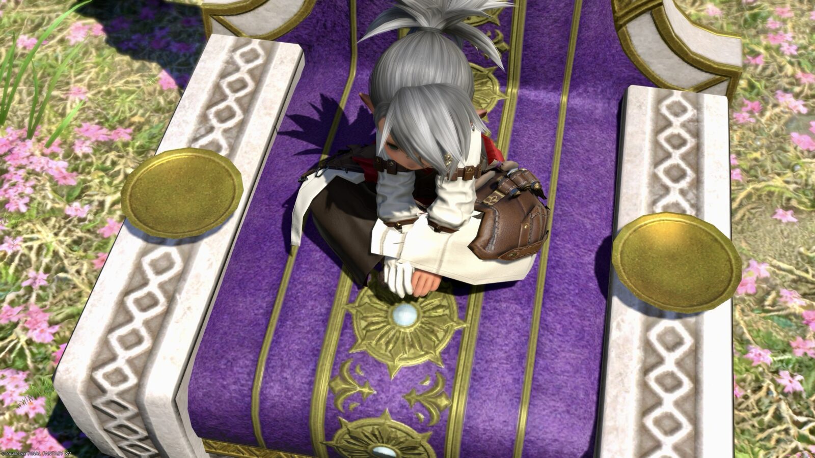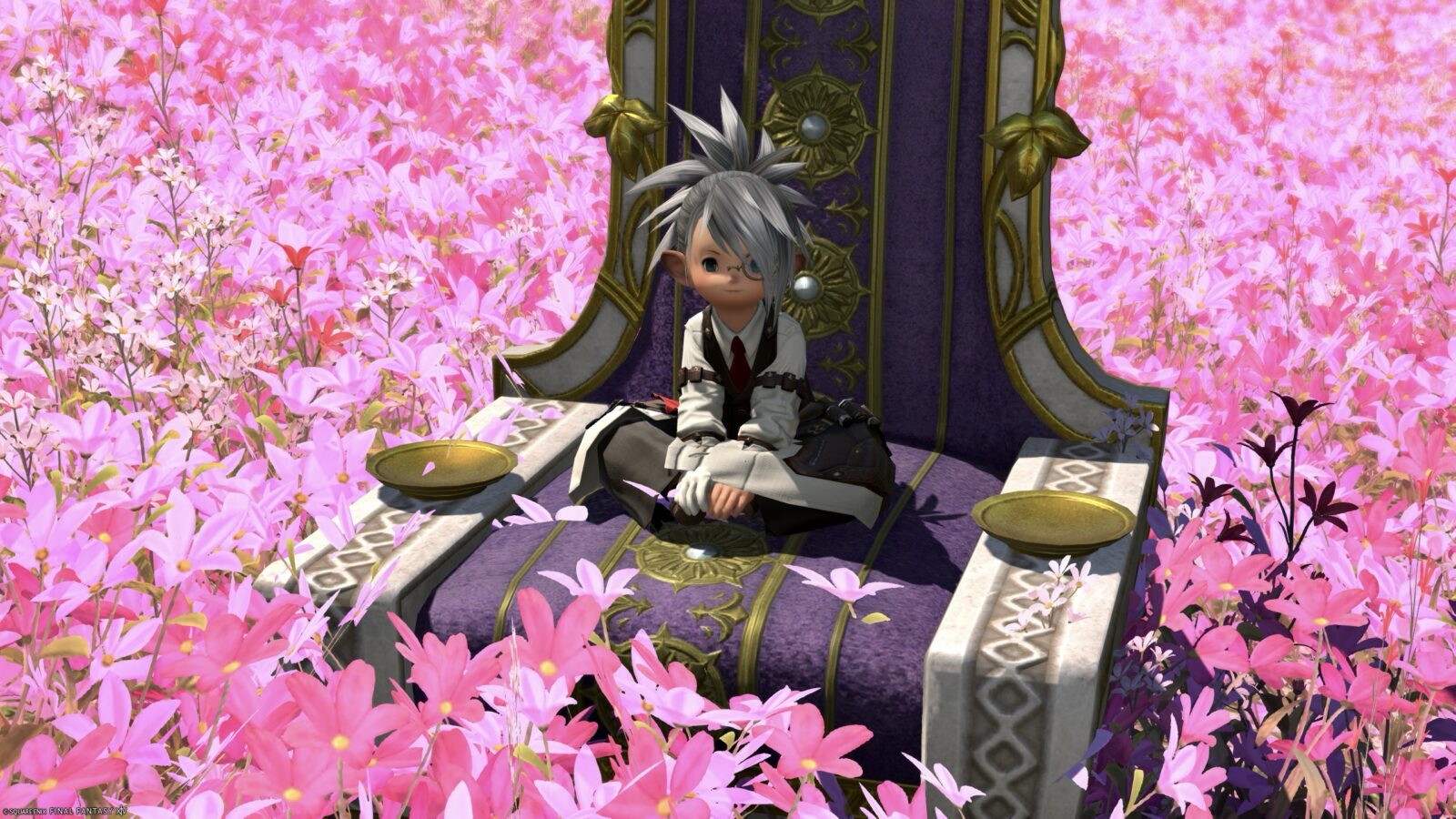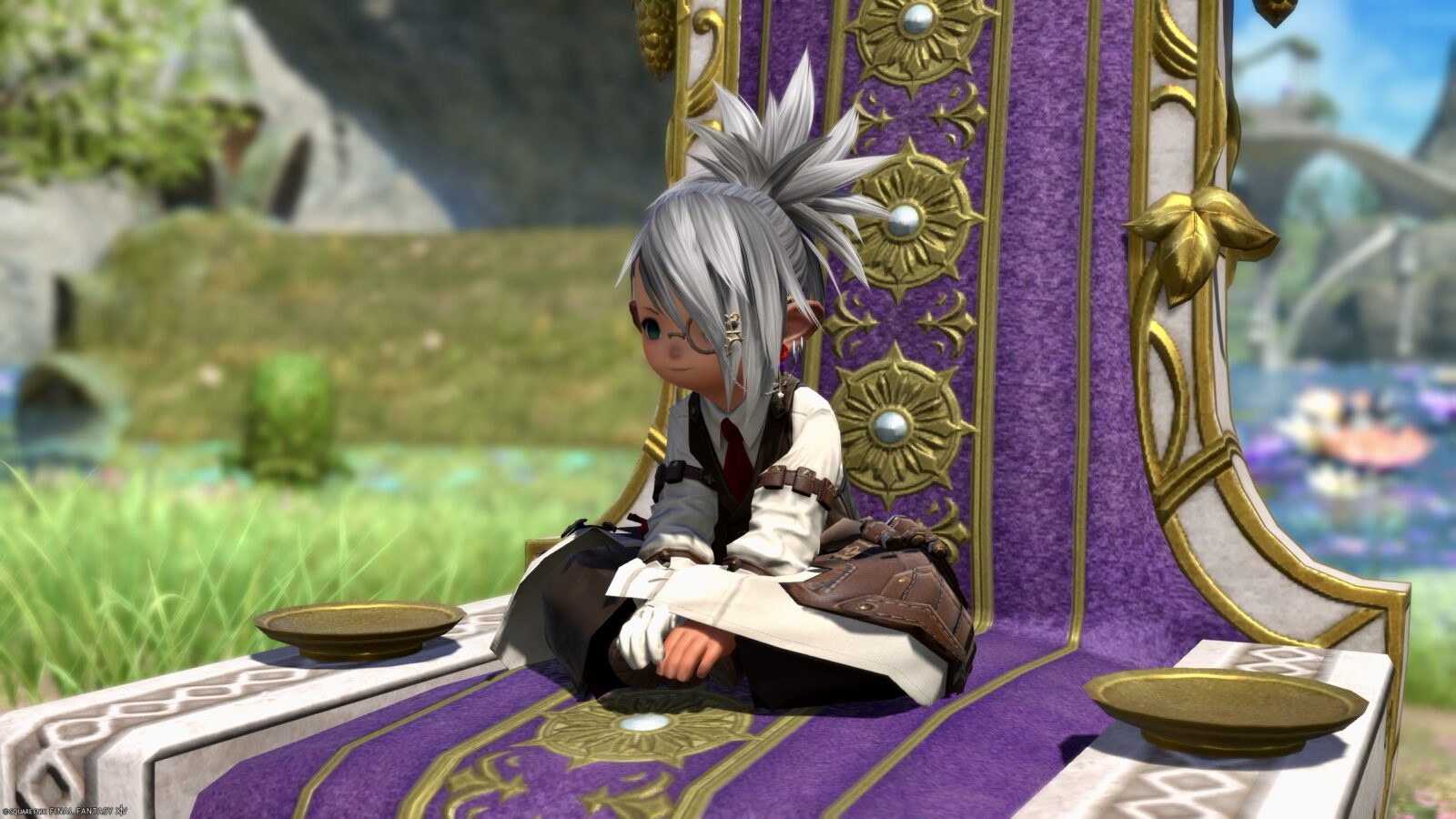 ララフェル男子の場合は椅子の上で胡坐をかいています。