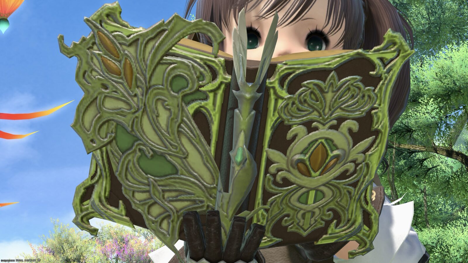 アール・ヌーヴォー風なアンティークな古文書・双蛇党の召喚士武器『グリダニアンキャプテン・グリモア』