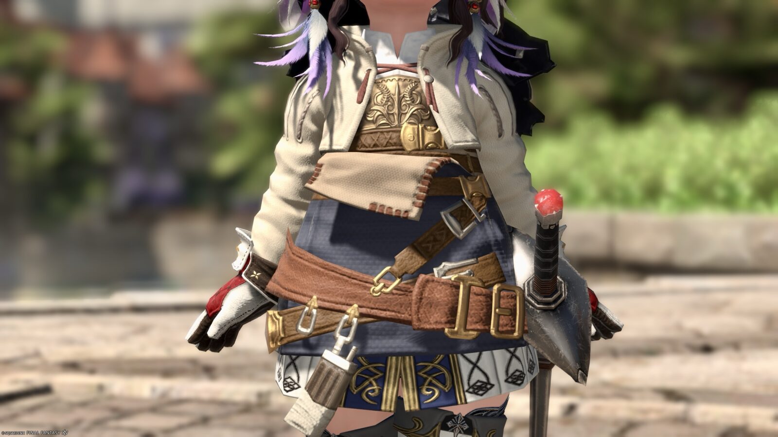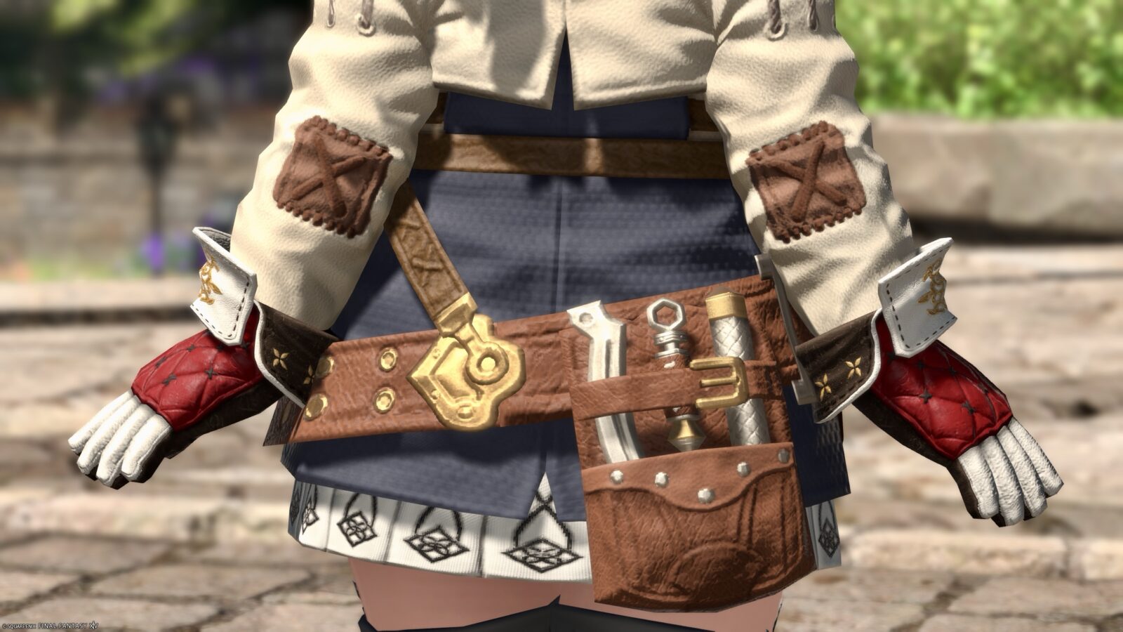 腰回りには機工士らしく色んな道具を備えています。肘当てパッチが可愛らしいところ♪